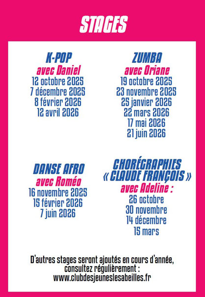 Vous pouvez d'ors et déjà prendre votre place pour les prochains stages :